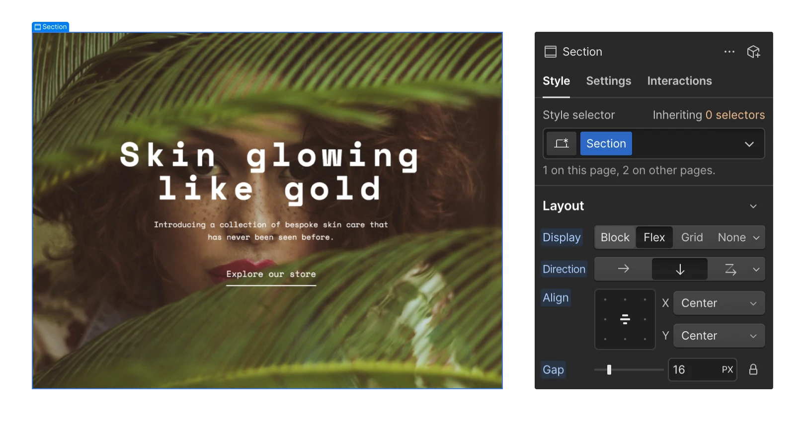 - Click the vertical “down arrow” icon to set the flex direction to vertical
